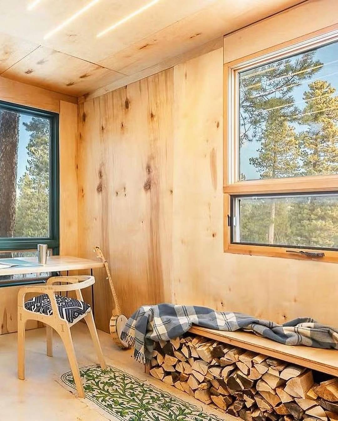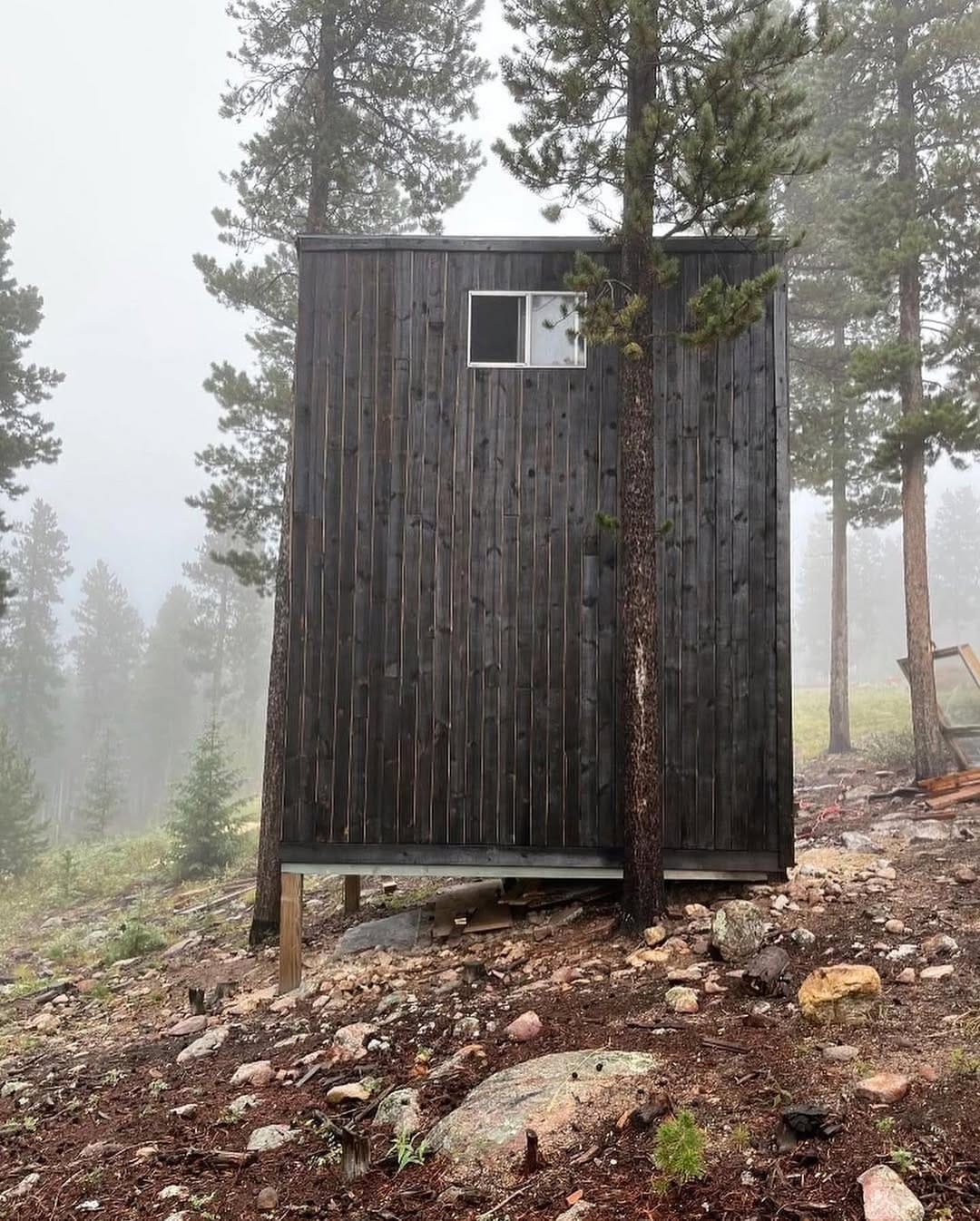 콜로라도주 네덜란드(Nederland) 근처 숲에 위치한 11제곱미터(120 ft²) 크기의 Tiny Home. 건축가 마이클 쿼크(Michael Quirk)가 설계했으며, 대마 단열재와 재활용된 외벽 마감재, 창문 및 문을 사용하여 지어졌다. 이 프로젝트는 건축 자재에 제2의 생명을 부여하는 데 중점을 두었으며, 재사용된 외벽 마감재와 창문, 문이 그 핵심.