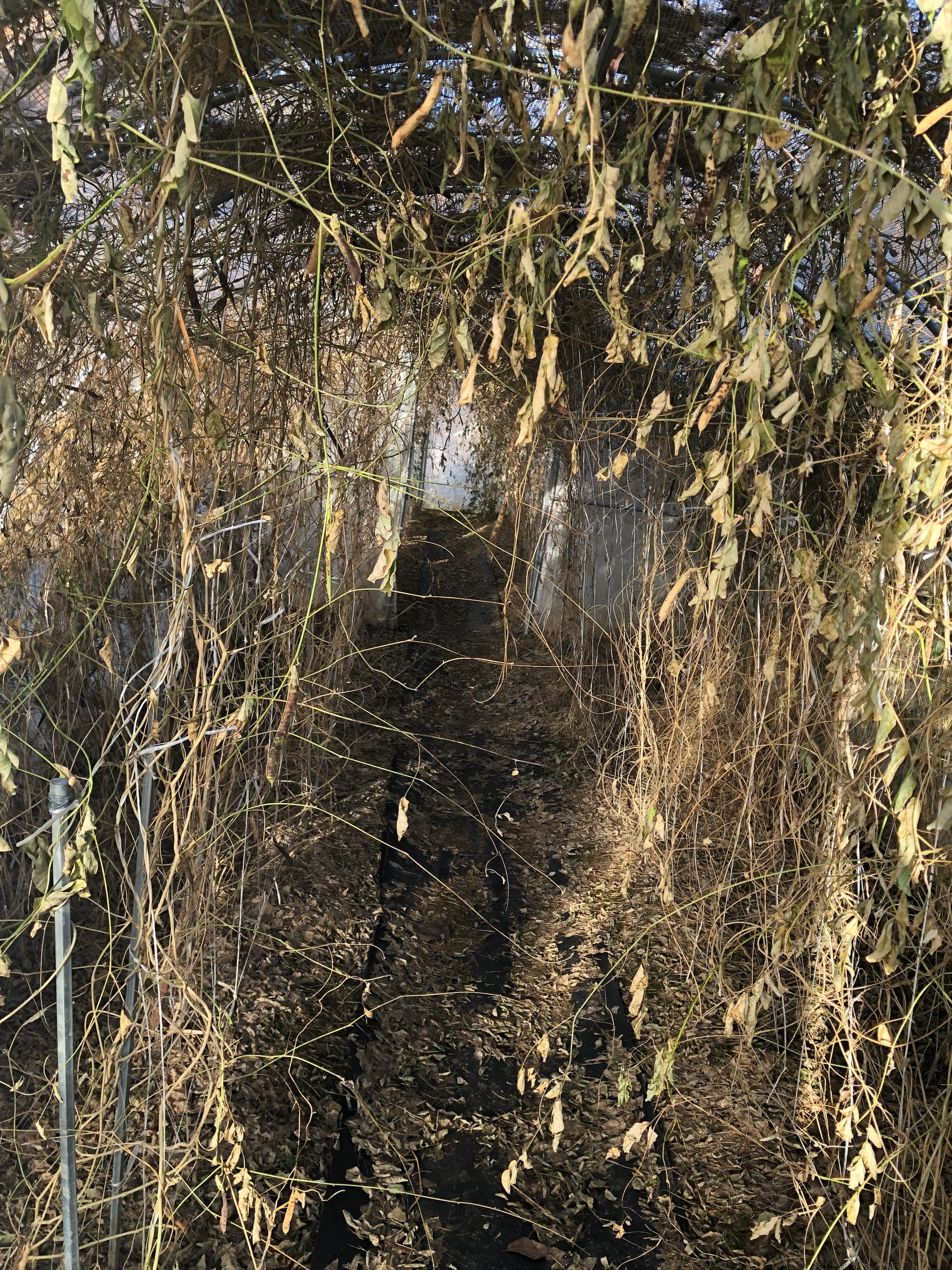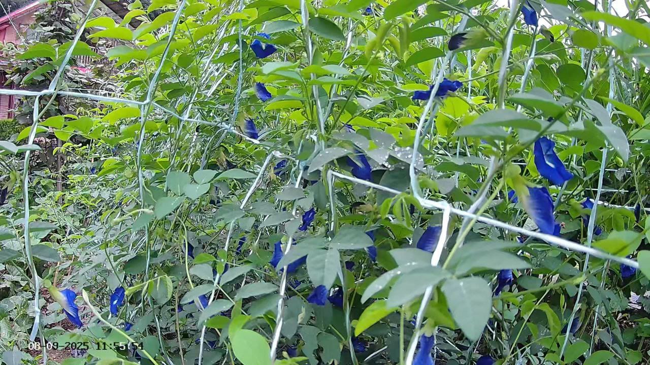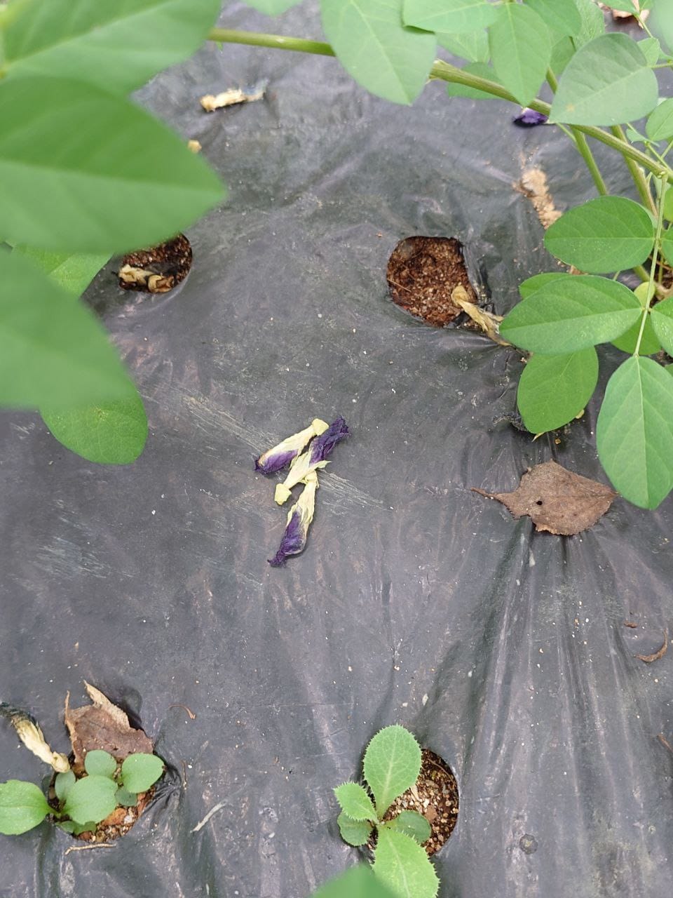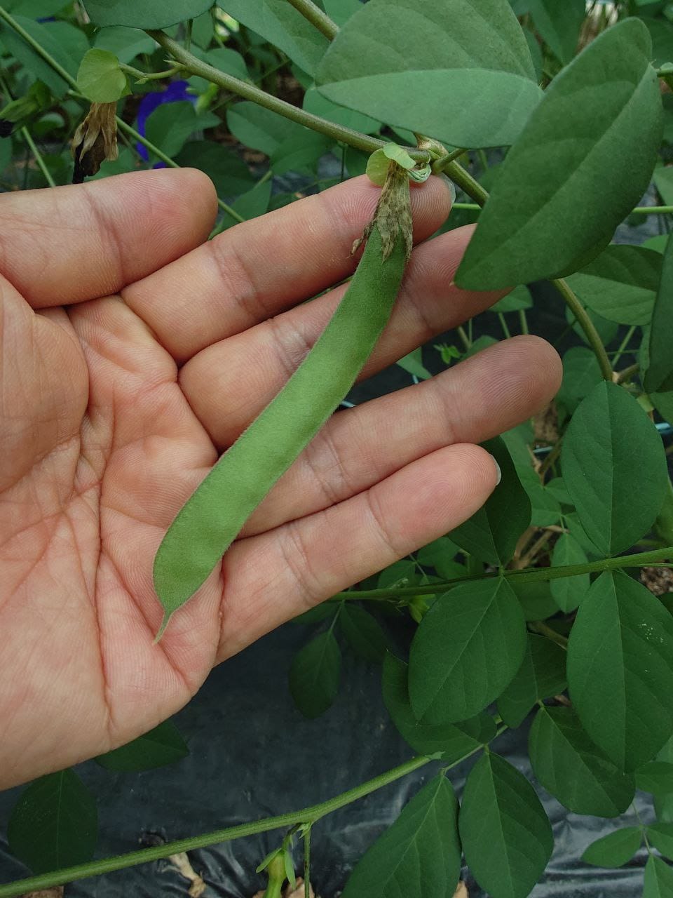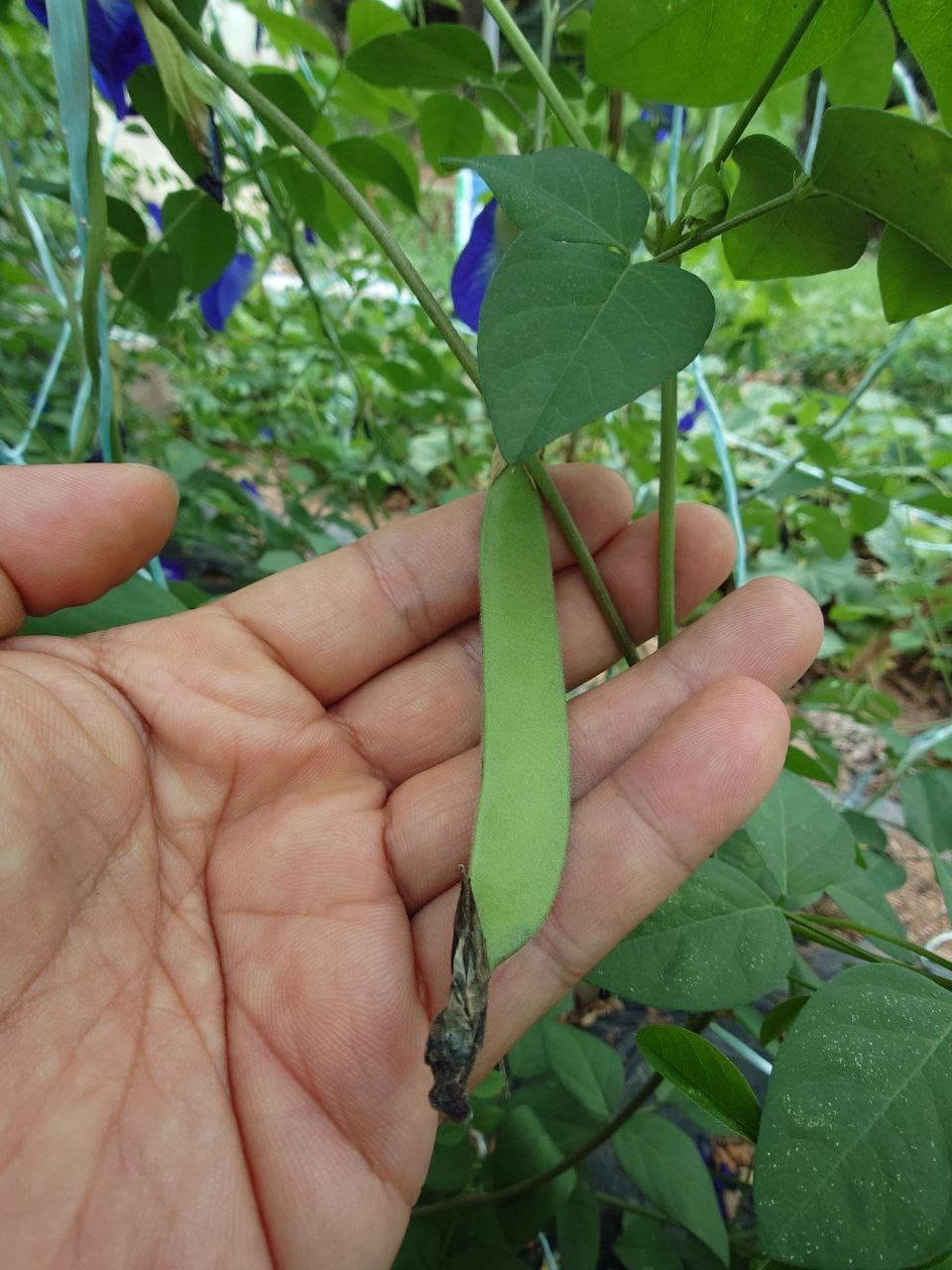 앞에서 말했듯이, 2025년 7월 말엽부터 꽃이 피기 시작한다. 그 꽃을 따지 않고 그냥 놔두면, 꽃대가 시들면서 종자 꼬투리가 생성되어 자라난다. 8월 초부터(2025년 8월 8일) 종자 꼬투리가 많이 관찰되기 시작했다. 꽃과 종자 꼬투리는 동시에 정신차리지 못할만큼 동시에 피어난다. 물론 종자 꼬투리는 성숙될때까지 내버려 두기로 한다. 통통하게 내부에서 살이오르는게 만져보면 느껴진다. 2025년의 장마철 초반은 마른 장마로 유지되다가 뒤늦게 엄청난 강우량을 기록할 만큼 퍼붓기도 했었다. 본디 고향이 동남아인 이 식물은 많은 비와 좋은 물빠짐, 그리고 강렬한 여름의 태양을 즐기는 종이라서 큰 문제는 없어 보였다. 아무런 농약도 하지 않고 아무런 비료도 없이 아주 잘 자라고 있다.