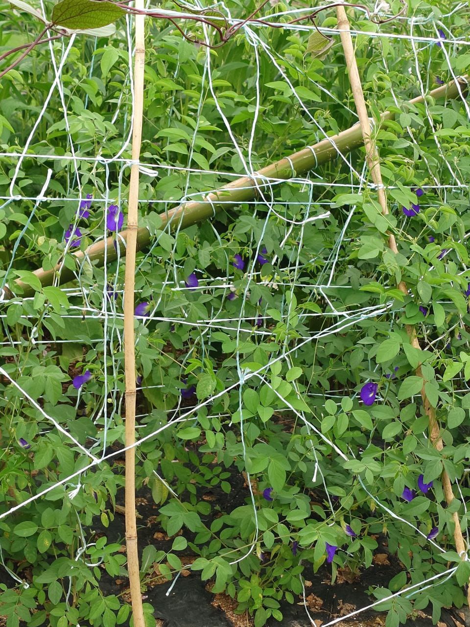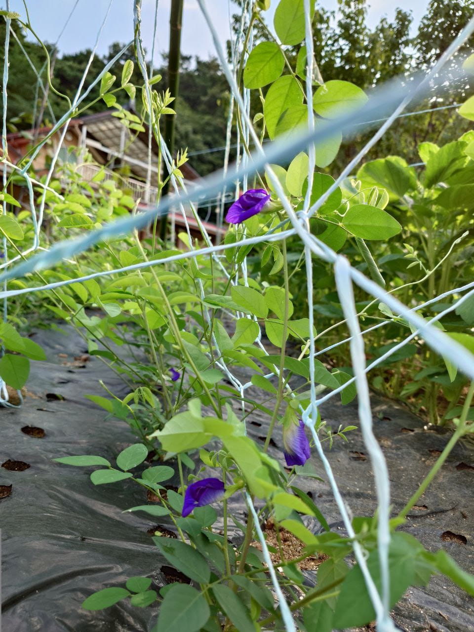 아무튼 싹이 한뼘 크기로 성장하면 정식을 했다(2025년 6월 중순~말). 그리고 과습되지 않게 적절한 수분 공급을 해준다. 물과 햇볕 이외에 다른 영양분은 별도로 공급하지 않았다. 생육기 내내. 덩쿨이 위로 올라가 적절하게 자리를 잡을수 있도록 끈으로 유인을 해줬다. 7월 말(2025년 7월 23일)이 되자 폭발적인 개화가 관측 되었다.