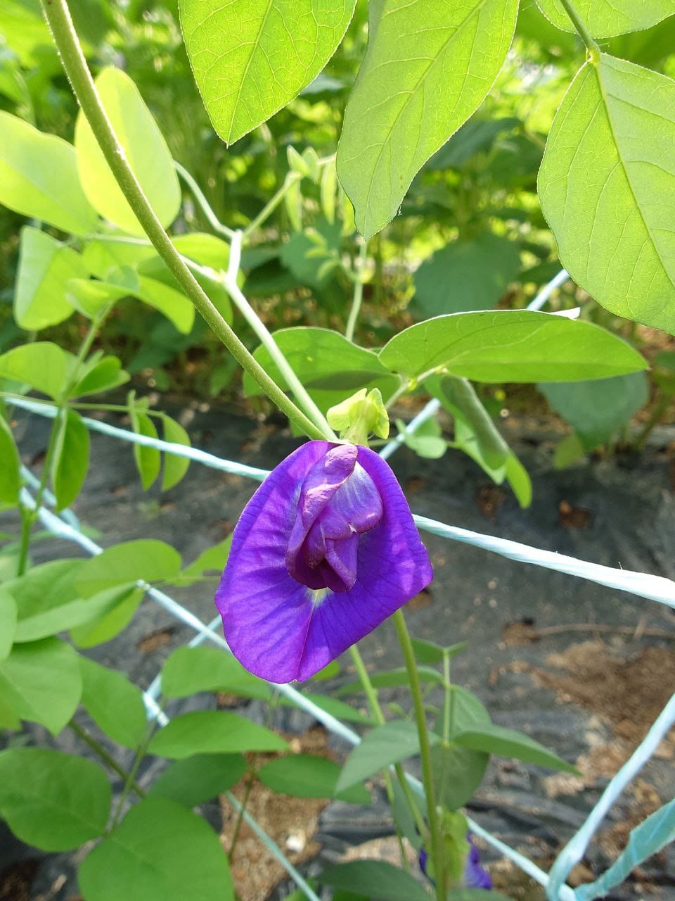 개화기는 7월말~11월 (결실시기: 8월 초순부터, 서리 내리기 전까지는 열매를 맺으면서 계속 개화함) 청보라색의 꽃이 잎겨드랑이에서 한 송이씩 피는것을 관찰할 수 있다.(원산지에선 대략 6년생, 연중 개화 가능. 한국 실외에선 서리가 내리면 소멸한다.) 생장 과정에서 가장 눈에 띄는 특징은 꽃의 색이다. 눈이 부시게 짙은 파란색을 자랑한다. 중심에 밝은 노란색 표시가 있는 독방이 있고 그 주변으로는 파란색이다.