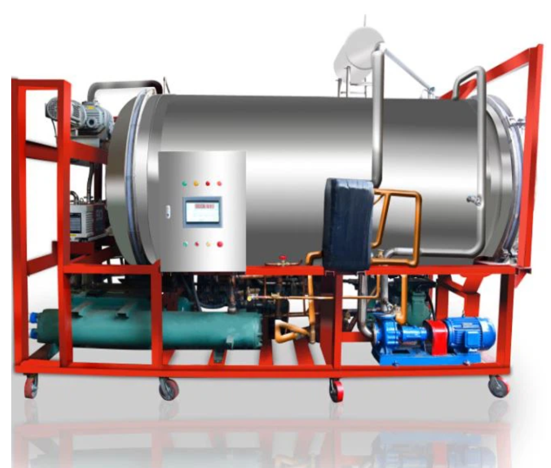 추출기(extractor) 건조를 마친 원물은 상온의 정제수와 혼합되어 500kg 탱크에 혼입되게 된다. 이후 교반작용과 초음파 발생장치가 액체상태의 용매인 정제수를 교반시키고 초음파로 진동을 일으켜 추출하려는 유효물질이 최대한 깨끗하고 효과적으로 용출되도록 유도한다. 이 과정에는 원료와 물만 투입되며 일체의 촉진제나 보존제는 넣지 않는다. 작동 시간은 24시간 이며 추출을 마친 결과물은 보존제가 들어있지 않기 때문에, 이로인한 변질을 막기위해 바로 다음 단계의 '극저온 건조' 단계로 진입한다.