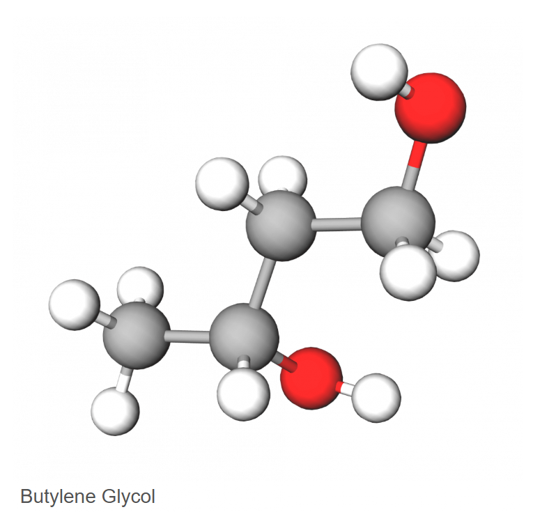이 물질은 무색무취의 액체로, 화장품 성분표에서 거의 빠지지 않고 등장하는 성분이다. 이렇게 폭넓게 사용되는 이유는 다양한 기능성을 가지기 때문이리라. 화학적으로 글리콜 계열의 알코올 성분으로 탄소 4개로 이루어진 짧은 체인 구조이다. 물, 기름 모두와 잘 어울리는 특성을 가지고 있다. 그래서 다양한 성분들을 하나로 모아주는 역할을 한다. 두 개의 알코올기가 수분을 끌어당겨 피부 속 수분을 채워주는 역할을 한다. 글리세린보다 가볍고 끈적임이 적어 사용감을 향상시키는 목적으로 첨가하는 성분이며 살리실산처럼 물에 잘 녹지 않는 성분들도 이 첨가물 덕분에 화장품에 안정적으로 배합될 수 있다고 한다. 이 물질은 발효시킨 사탕수수나 옥수수 등에서 추출한 지방산으로부터 유래되기도 하며, 식물 추출물의 일부로 사용되기도 한다. 이 물질이 화장품이나 식품 첨가물로 미국 fda에 의해 승인 받은 물질이기는 하다. 또한 권장배합한도(CIR 기준) 89%까지 사용할 수 있을 만큼 안정적이라고 지목된 성분이기도 하다. 비슷한 천연 보습성분으로는 글리세린, 히아루론산, 폴리글루타믹애씨드가 있다. 그렇지만 내가 원료를 추출하는 과정에 뷰틸렌글라이콜 30%를 첨가하여 만들지 않으려는 이유는 아래와 같다.