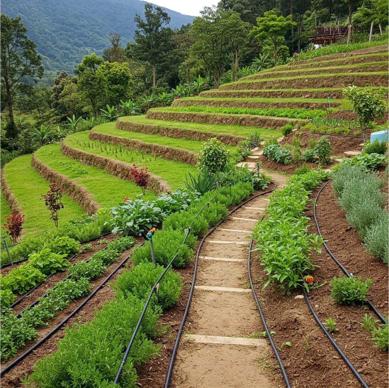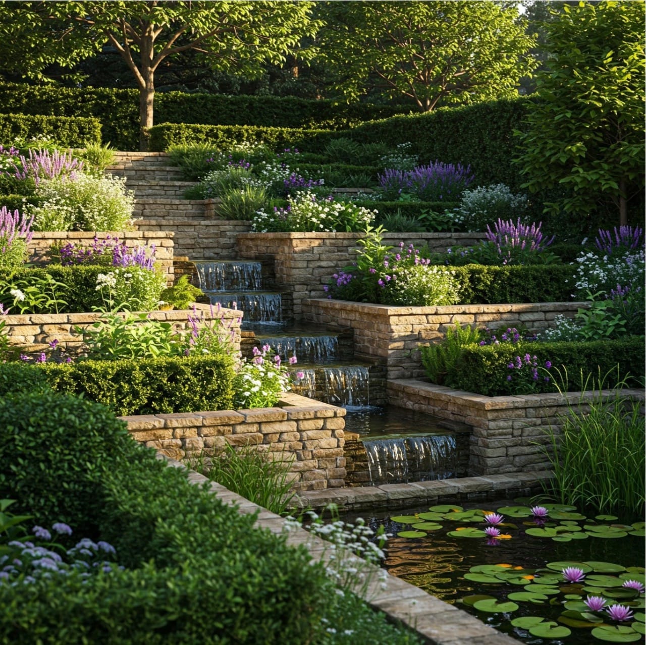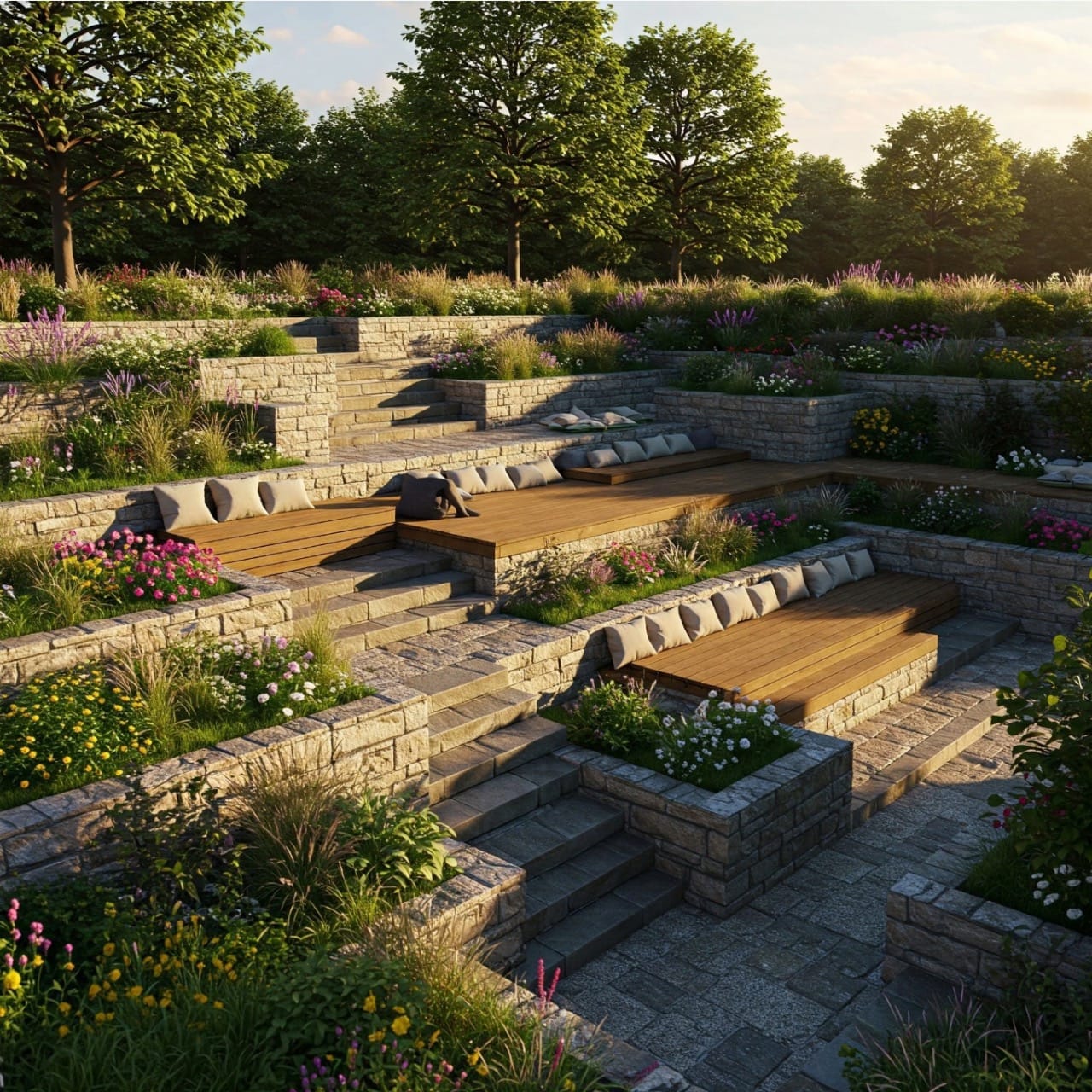 테라스 정원을 가꾼다는 것은, 각 층마다 고유한 색감과 질감, 기능이 어우러진 아름다움을 쌓아 올리는 음악을 작곡하는 것과도 같다. 적합한 배치와 돌 옹벽 시공, 수경 요소와 수직 정원 배치에 이르기까지 창조력의 폭은 거의 제한이 없다. 그늘진 아늑한 휴식 공간이나 시선을 사로잡는 예술 조형물을 곳곳에 배치해, 걷는 내내 즐거운 놀라움을 선사할 수도 있다. 반듯한 대칭형 디자인을 택하든, 자유롭고 자연스러운 구성을 선택하든, 테라스 정원은 언제나 계절과 취향에 따라 변화하는 살아 있는 작품이다. 결국 단차를 가진 테라스 정원의 진정한 매력은 형태와 기능의 조화에 있고, 단순한 경사를 평화로운 휴식처이자 멋진 볼거리로 바꾸는 데 있다.