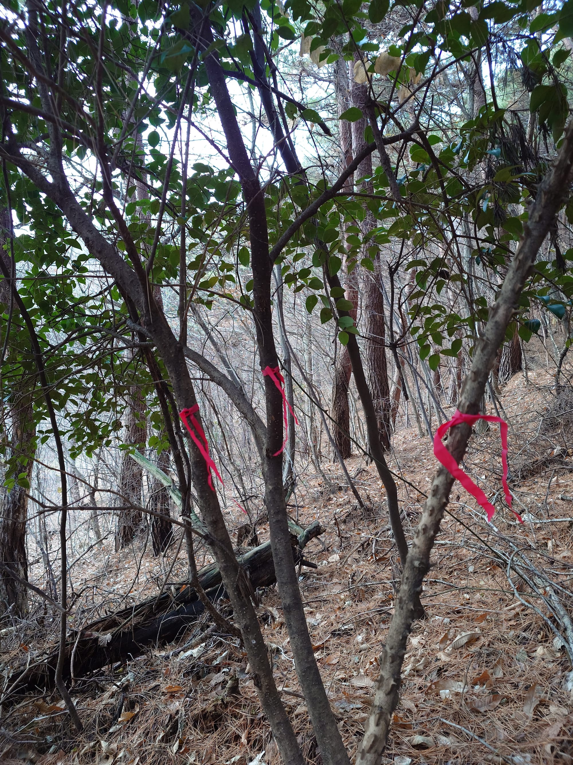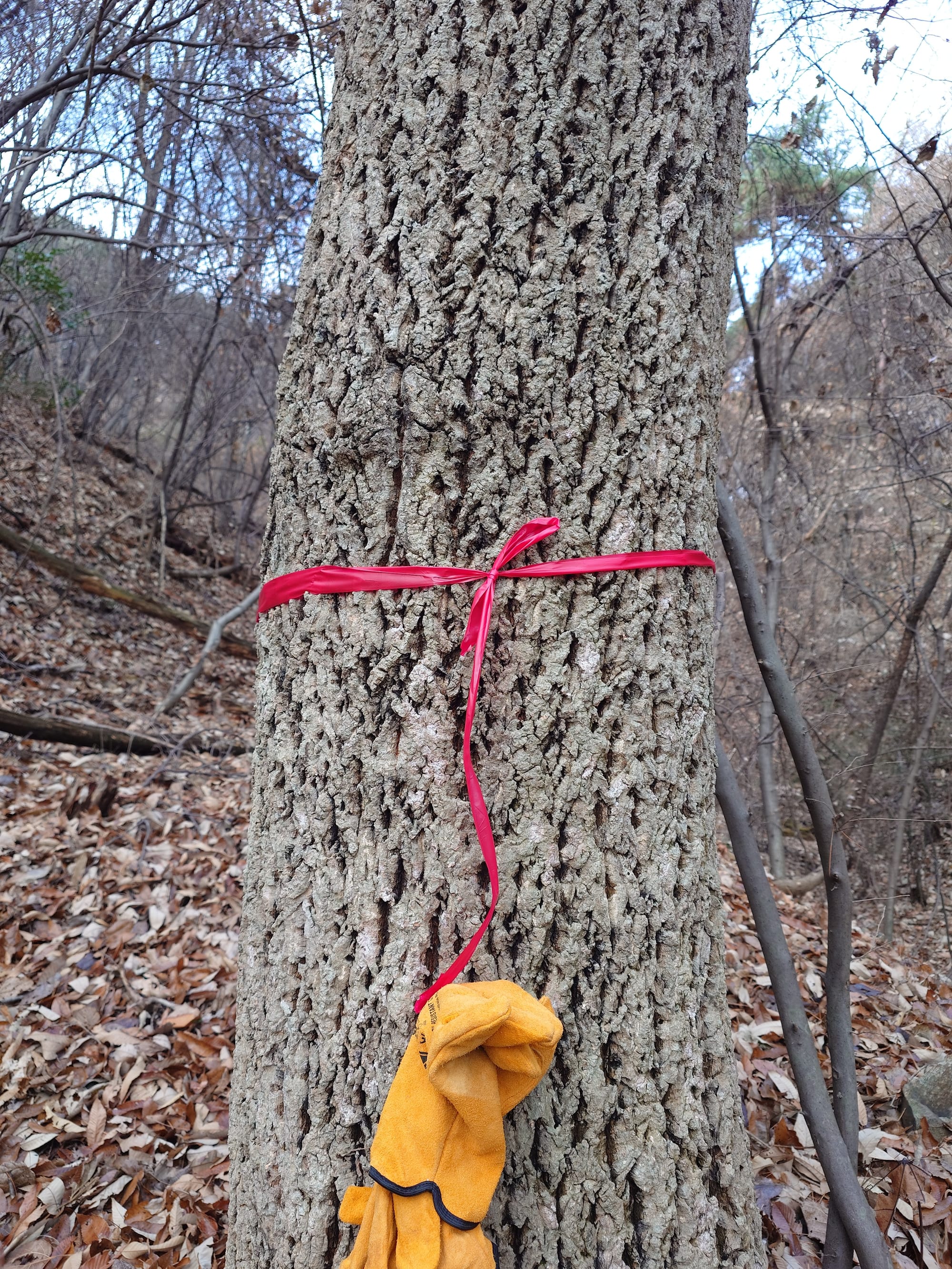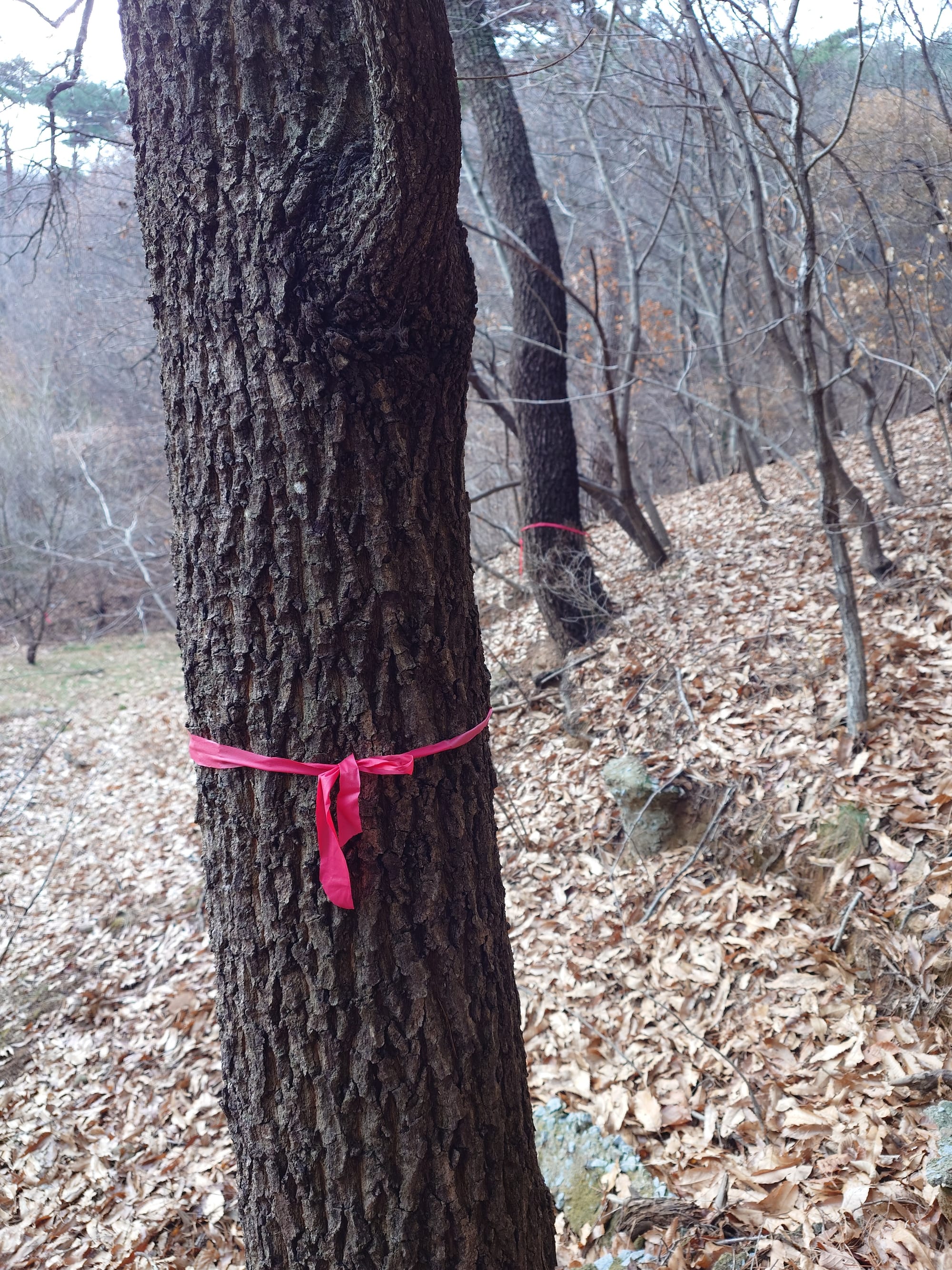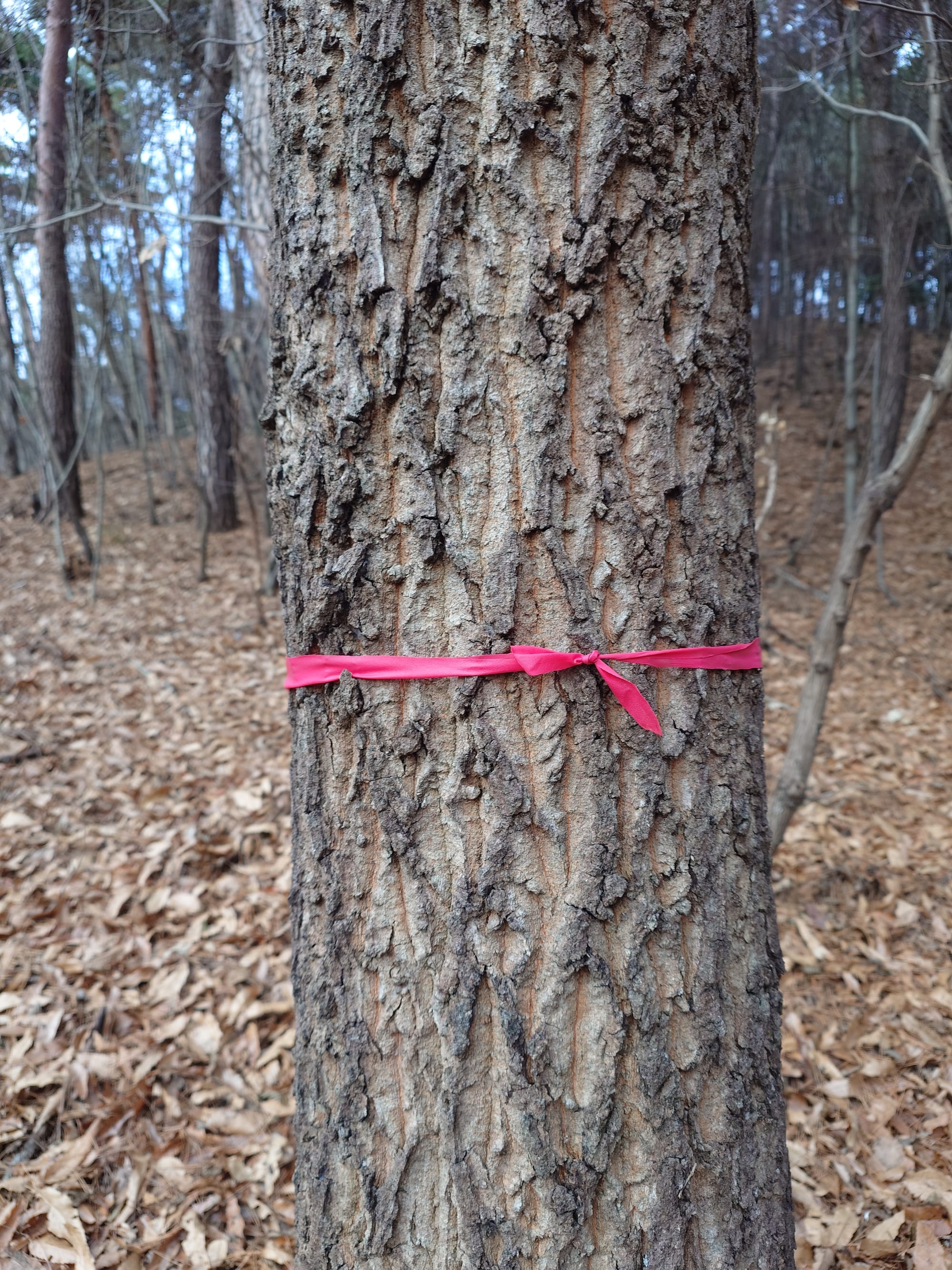 내일부터 벌목 시작됨. 2.5hr(헥타아르). 소나무가 대부분이다. 100살 넘는 소나무들을 제거하고 '편백나무'로 식재할 것이다.